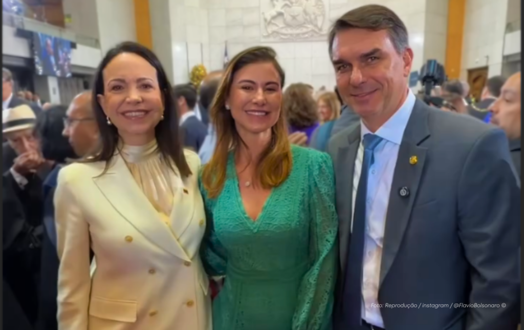 Em Valparaíso, Flávio Bolsonaro encontra María Corina Machado e destaca “justiça e democracia” para a América Latina